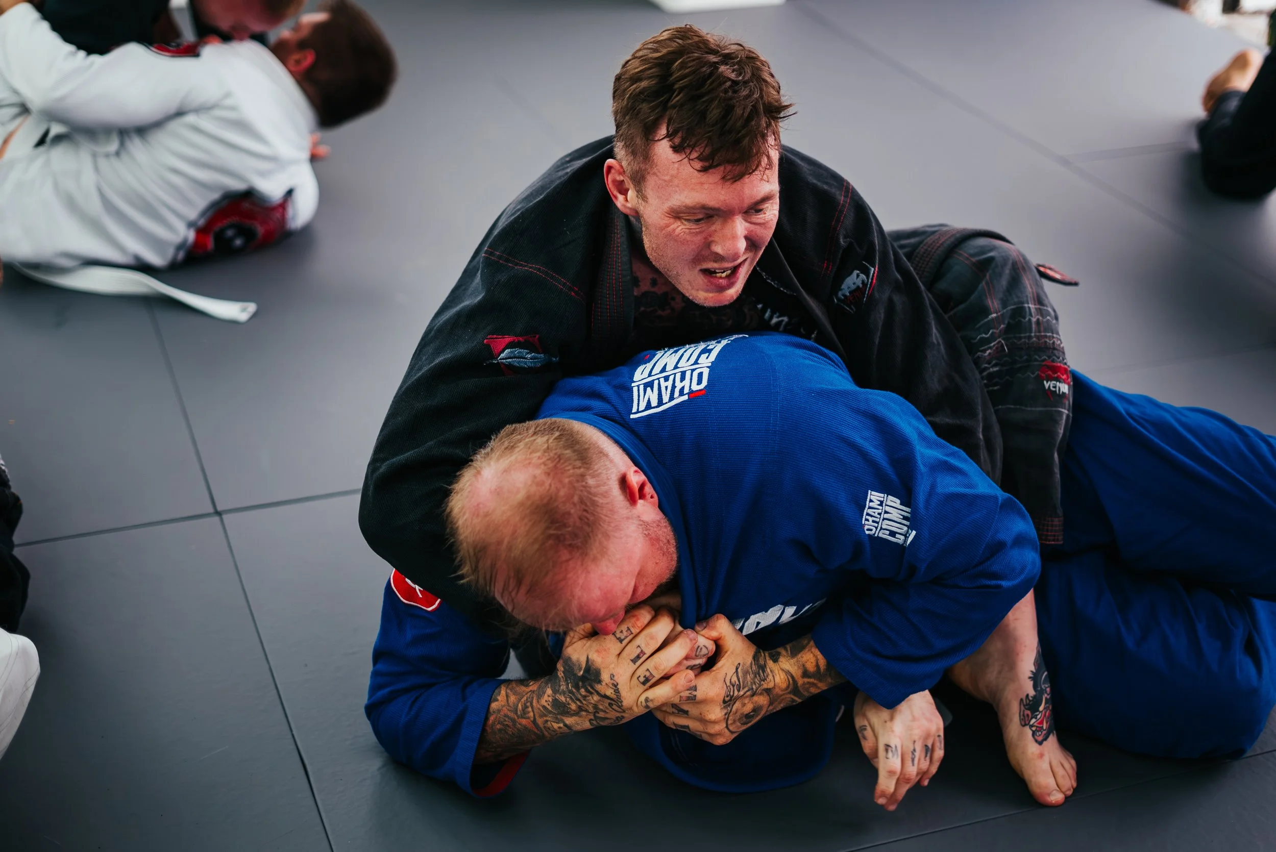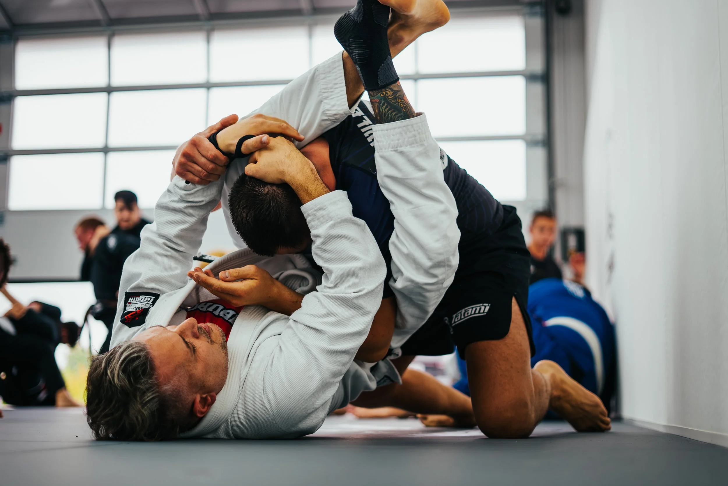 WIR SIND EINE KAMPFSPORTSCHULE MIT SCHWERPUNKT BJJ (BRAZILIAN JIU JITSU). BEI UNS TRAINIERST DU BODENKAMPF IN FREUNDSCHAFTLICHER ATMOSPHÄRE. DU KOMMST AN DEINE GRENZEN UND LERNST DICH SELBST ZU VERTEIDIGEN. DU VERBESSERST NACHHALTIG DEINE FITNESS UND DEIN CARDIO. VOR ALLEM ABER, WIRST DU SPAẞ DABEI HABEN!